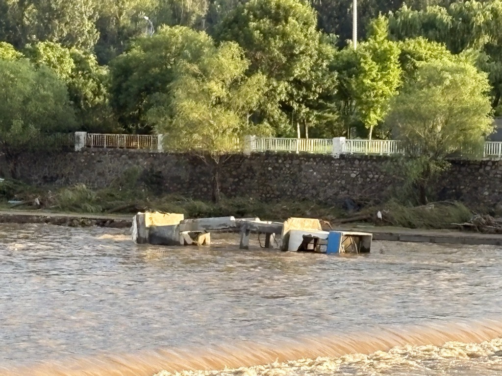 現場一水利部門的工作人員向澎湃新聞表示,這一河段暫時只能人工實地監測水位、流量等變化。“平時流量就50m3/s”,7月28日凌晨4點,雨勢驟增,加上上游水流匯聚,水位快速上漲,監控攝像時斷時續,至5點多水文站被沖塌,“這次就倆鐘頭,流量漲到2000多m3/s”,翻了將近40倍。