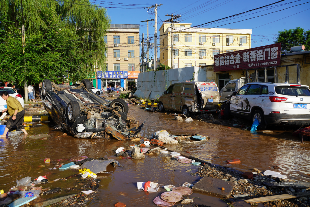 滴滴公益救援隊的時鳴澤說,他當時去太師屯鎮一處挨著山林的回遷房居民區救人,發現有的樓里一樓的人撤離了,二樓、三樓或更高樓層的居民卻沒走,被困在樓里,大家都沒想到水位會漲那么高;還有一棟居民樓的單元門前堆放了兒童推車等雜物,洪水和泥沙一來直接把單元門“封死”了,最后救援人員不得不將鏟車升到二層窗口進行救援。