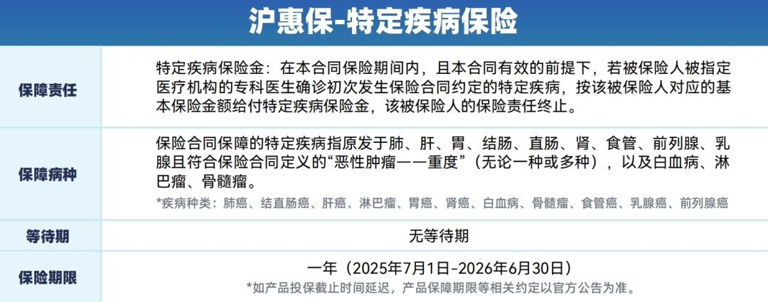 “滬惠保-特定疾病保險”與“滬惠保”原有的醫療費用補償功能形成互補,實現 “治病能報銷,患病有津貼”的雙重保障升級。