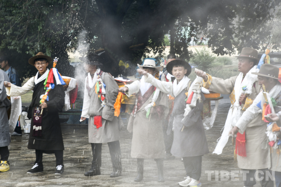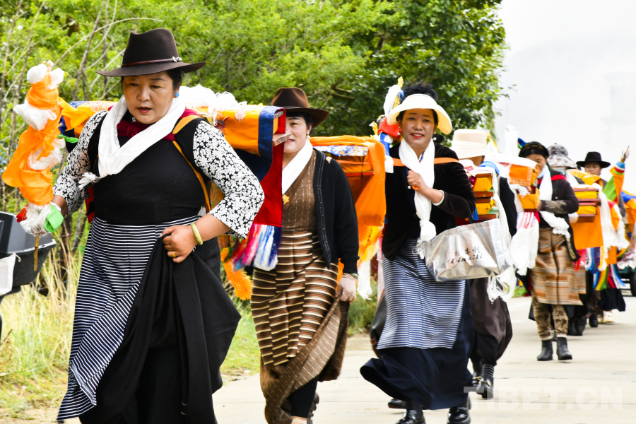 望果節(jié),是流行于西藏的傳統(tǒng)民俗,國家級非物質(zhì)文化遺產(chǎn)之一。“望”是指莊稼,藏語叫“望卡”或“興卡”,“果”是轉圈的意思,即繞著豐收在望的莊稼轉圈,是西藏農(nóng)區(qū)歡慶豐收的民俗。7月28日,在西藏自治區(qū)拉薩市曲水縣才納鄉(xiāng),村民們身著新裝、手提大小飯盒,背上還背著酥油茶和青稞酒,開始望果節(jié)第一日的轉田游行,感謝大自然給人們帶來了風調(diào)雨順的好年景。(中國西藏網(wǎng) 記者/趙振宇)