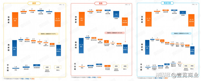 從商家端看,美團商家實際收入最高,京東次之,淘寶閃購最低。值得注意的是,京東平臺商家收入甚至高于消費者支付價,凸顯京東對商家的強力補貼。