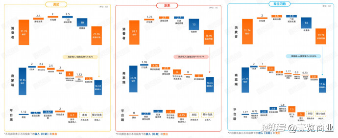 從消費端看,京東對消費者最友好,淘寶閃購次之,美團消費者支付最高。