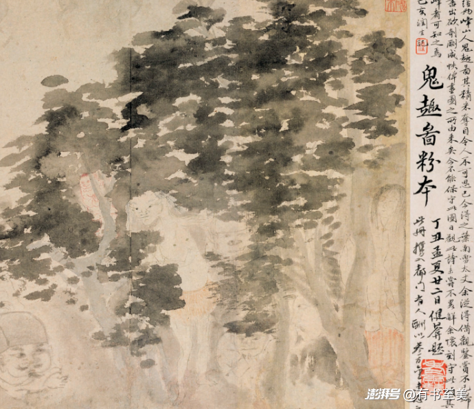 白日魅影:清代羅聘的《鬼趣圖》極具氛圍感,在墨色暈染的彌漫的煙霧中,隱約可見鬼影現形,如真似幻。