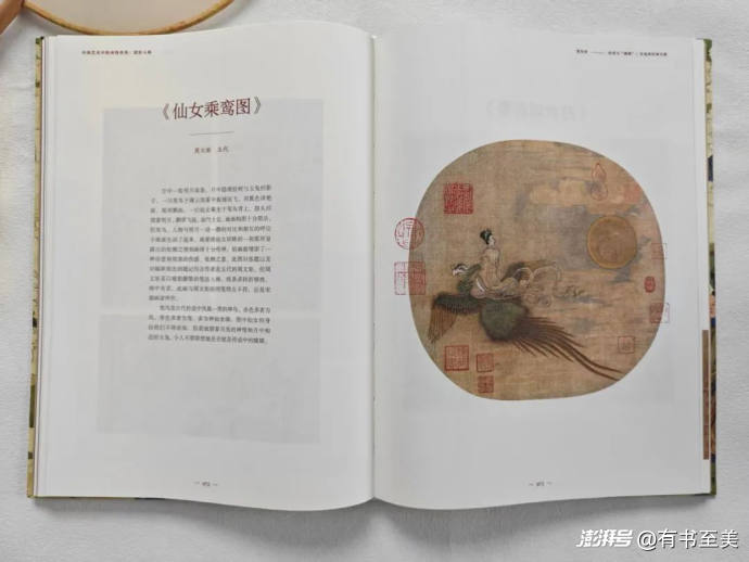 這本在制作上也是對于傳統美學的極致致敬。為了完美呈現古畫的獨特美感,內文選用進口特種藝術紙,并且采用鎖線精裝工藝,書脊可以180°平攤,確保《洛神賦圖》的飄逸線條和《搜山圖》的恢弘場景都能完整呈現。
