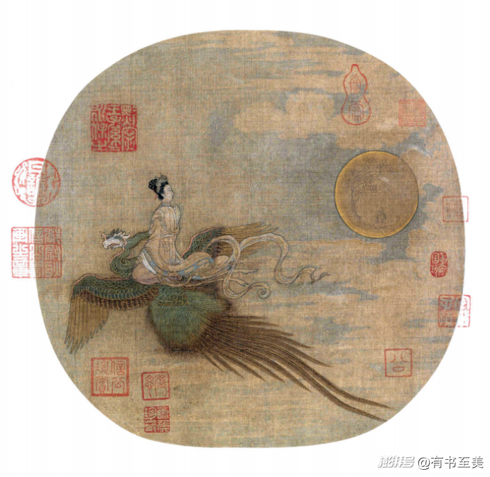 《仙女乘鸞圖》中鸞鳥每一片翎毛清晰可辨,仿佛下一秒就要振翅飛出紙面。