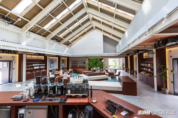 與茶室的靜謐不同,隔壁的“構想幾何·咖啡工廠店”則充滿了年輕的活力。