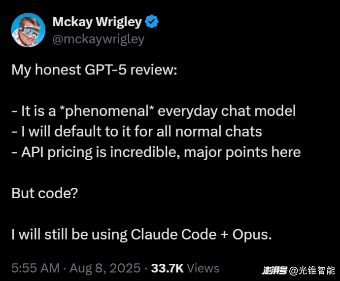 “GPT-5 是我們迄今為止最聰明的模型,但我們主要追求的是實(shí)際應(yīng)用價(jià)值和大規(guī)模的普及/負(fù)擔(dān)能力。”Altman在X上說(shuō),“我們完全可以發(fā)布更智能的模型,而且我們會(huì)這樣做,但這個(gè)模型將有數(shù)十億人受益。”