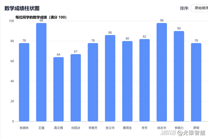 對(duì)此,光錐智能也隨便給了一組數(shù)據(jù)測(cè)試,讓GPT-5做柱狀圖。最終跑出來(lái)的數(shù)據(jù)和圖表關(guān)系對(duì)照沒(méi)有錯(cuò)誤,可見(jiàn)不是模型生成的問(wèn)題,大概單純是制圖失誤。