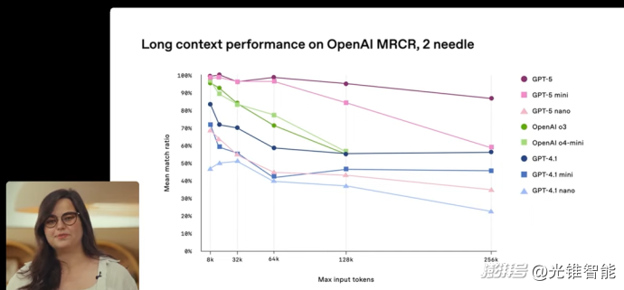 除了上述優(yōu)化外,GPT-5還在模型的超長(zhǎng)上下文理解、幻覺(jué)問(wèn)題等方面做調(diào)整,一切的努力都是為了讓這個(gè)模型能夠更好地落地。