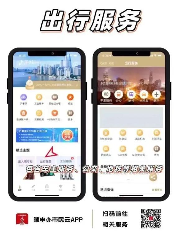 “隨申辦市民云”APP【出行服務(wù)】專區(qū),還包括公交到站實時查詢、航空、景點熱力圖等服務(wù)。