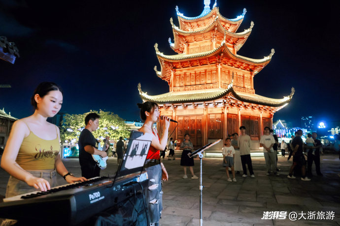 夜幕降臨,南官河上的月河舫游船悠然前行,河畔的“廿五間”大宋集市人聲鼎沸。以宋韻文化為內(nèi)核的敘宴項(xiàng)目,通過沉浸式場(chǎng)景還原南宋市井風(fēng)貌,游客既可品嘗“餐秀”美食,又能參與古法拓印、香囊制作等互動(dòng)體驗(yàn)。
