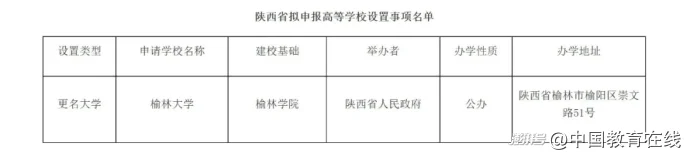 8月12日,陜西省教育廳發布關于擬申報高等學校設置事項的公示。