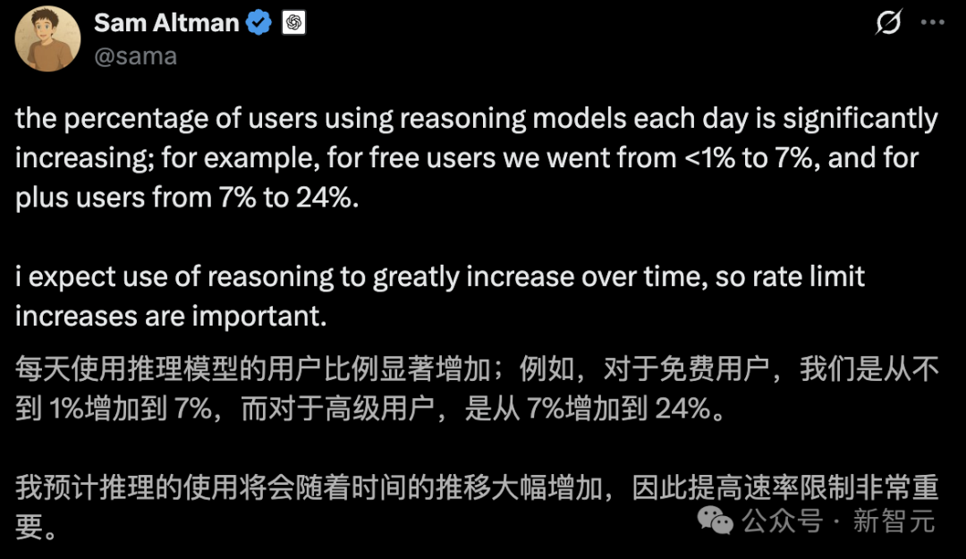 過去,超過99%的免費用戶,從未用過類似o3的深度思考模型;如今,對他們而言,ChatGPT迎來的是「質變」。甚至奧特曼發文慶祝推理模式太火,要限制試用次數!