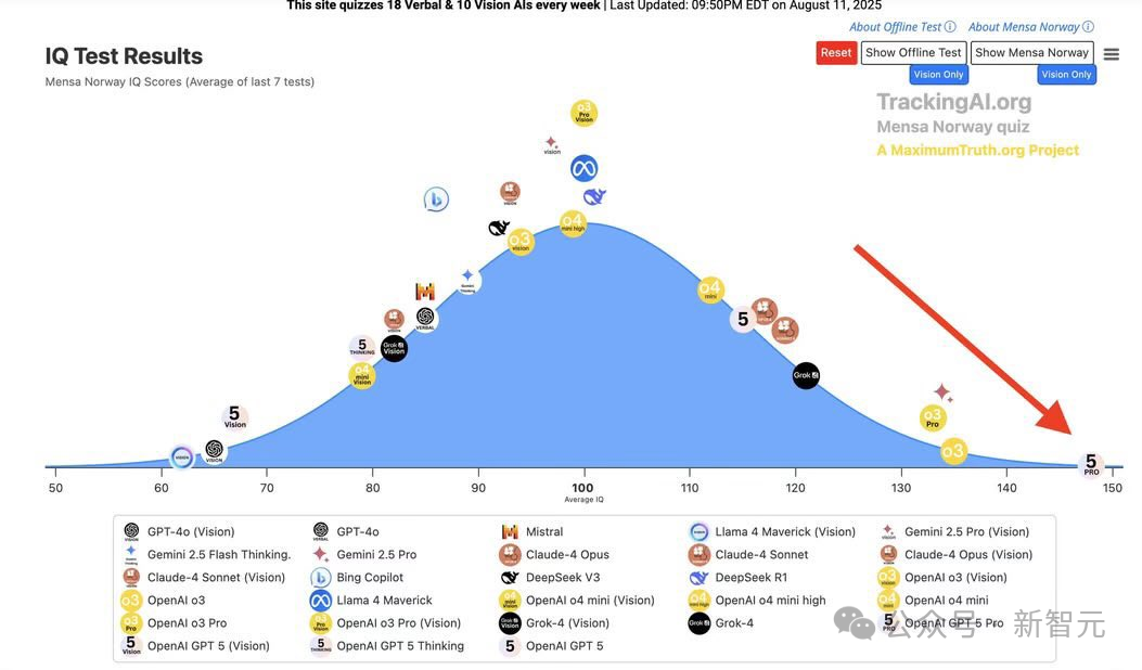GPT-5 Pro智商高達148,真超越了人類天才的140!