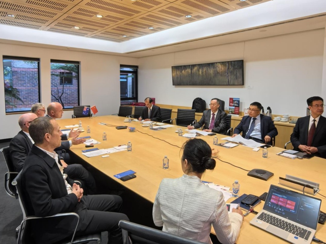 在悉尼大學,代表團分別會見了人文與社會學部史蒂芬?惠蘭(Stephen Whelan)教授、阿爾蒂?辛格副教授,工程學部負責人林登俊(Lim Teng Joon)教授、斯里·帕拉梅斯瓦蘭(Sri Parameswaran)教授、馬進教授、湯姆·戈爾德芬奇(Tom Goldfinch)副教授等,并就未來合作展開了深入交流。雙方將持續探索在區域經濟學、新能源、高等教育、化學工程等領域的合作,建立暢通渠道,推動人員往來。
