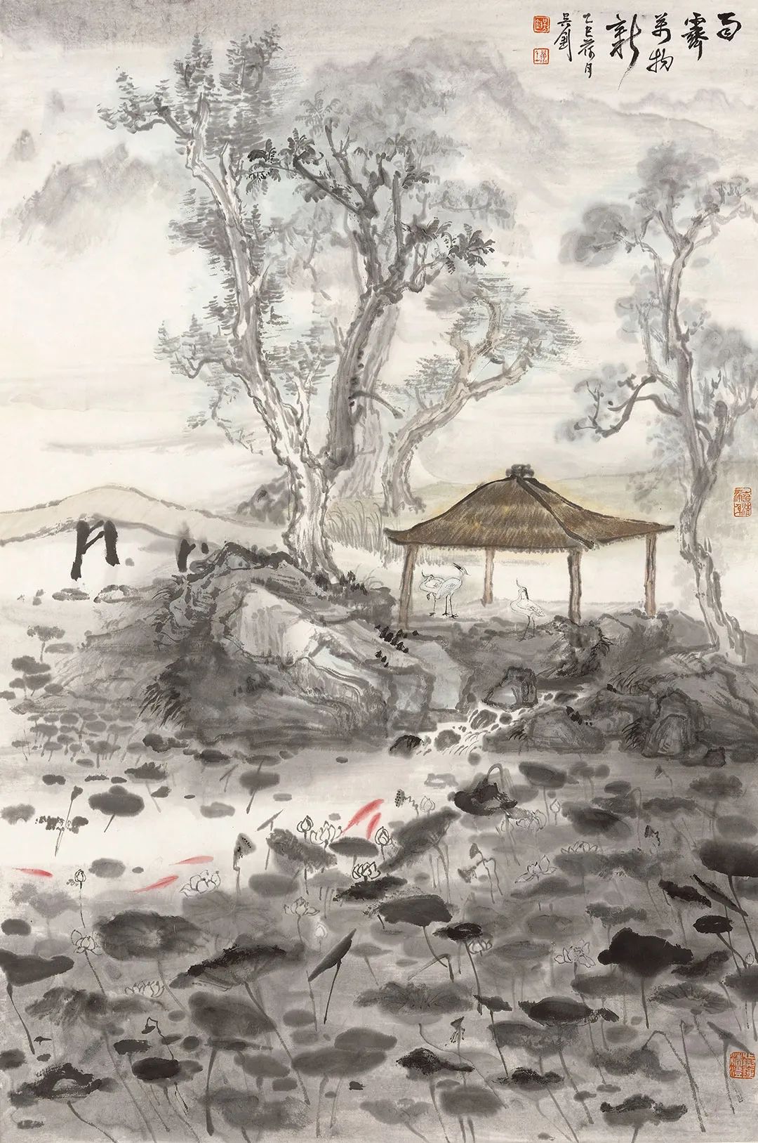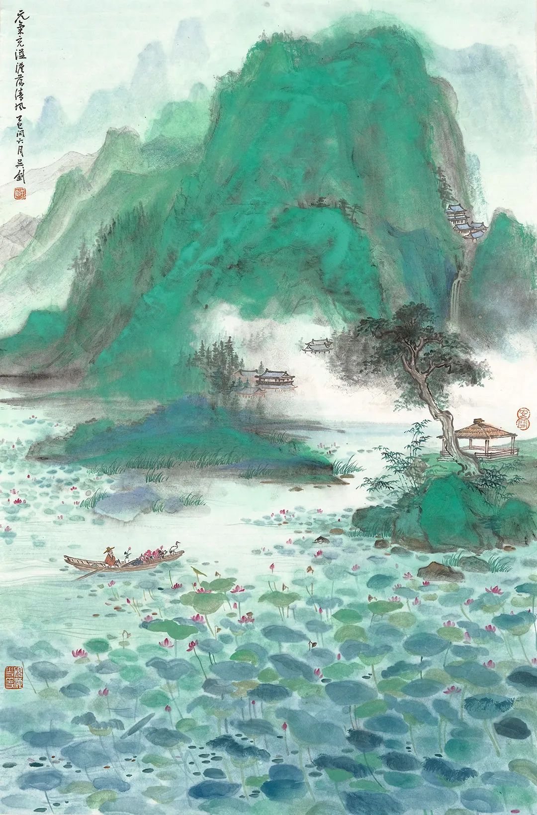 元氣充溢澹蕩荷風-68x46cm-紙本設色