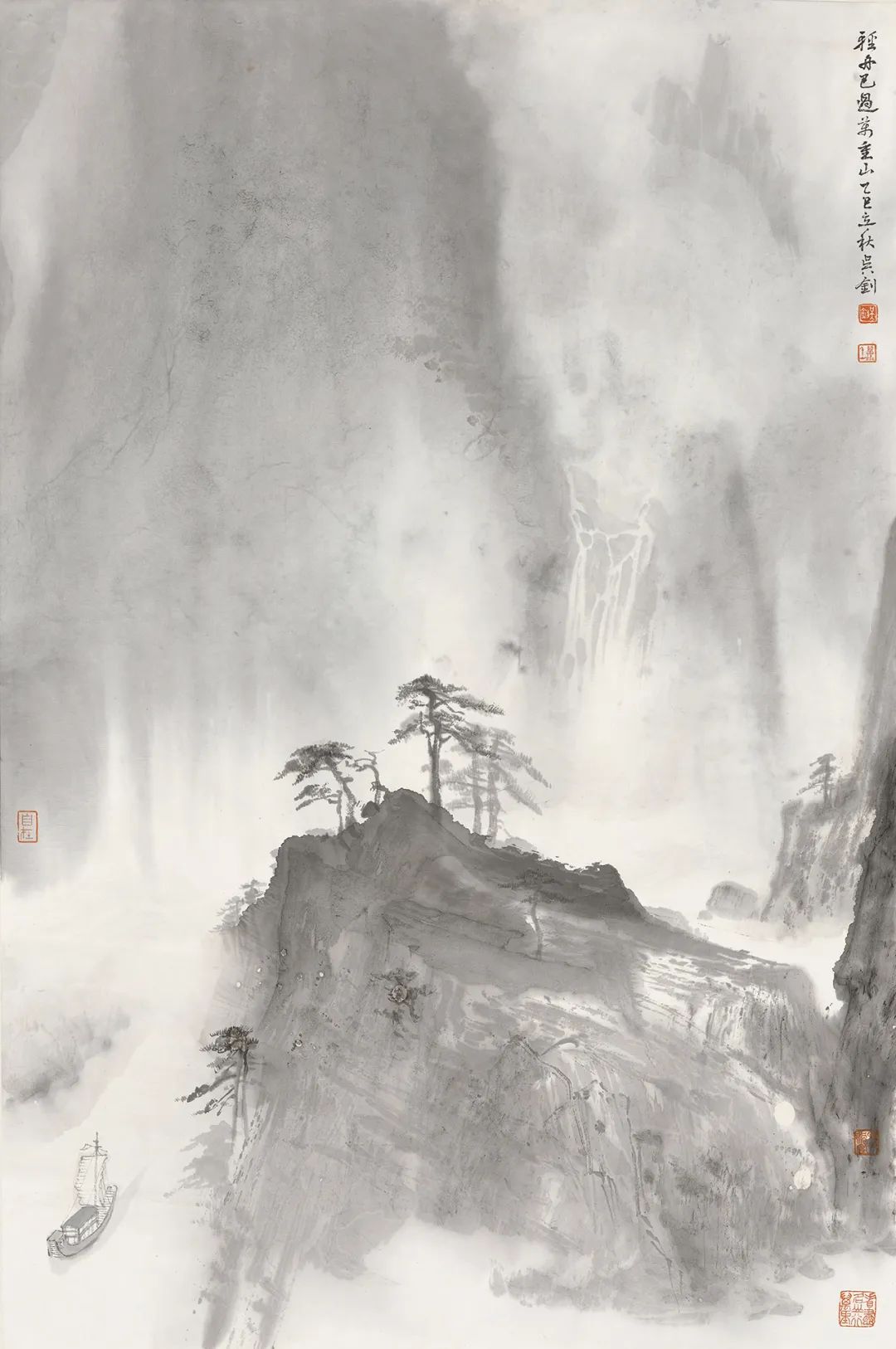 風雨帆影輕舟萬山-68x46cm-紙本設色
