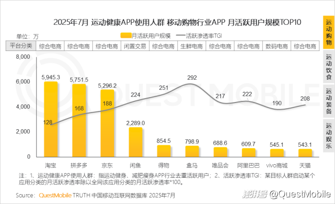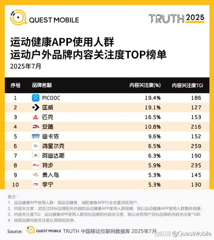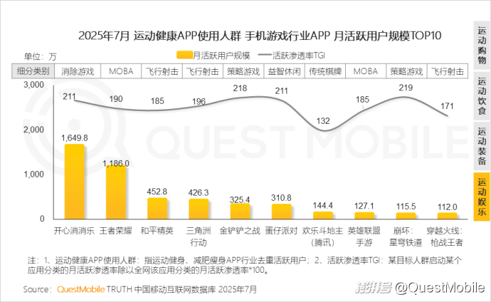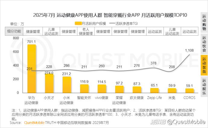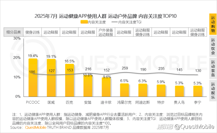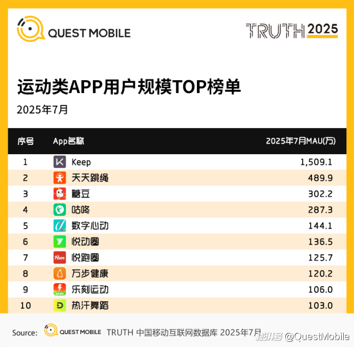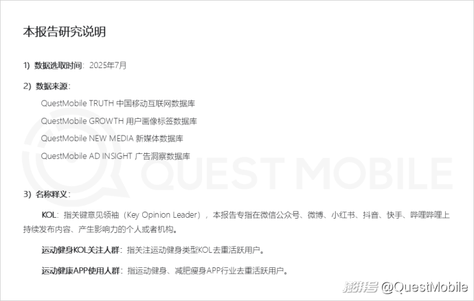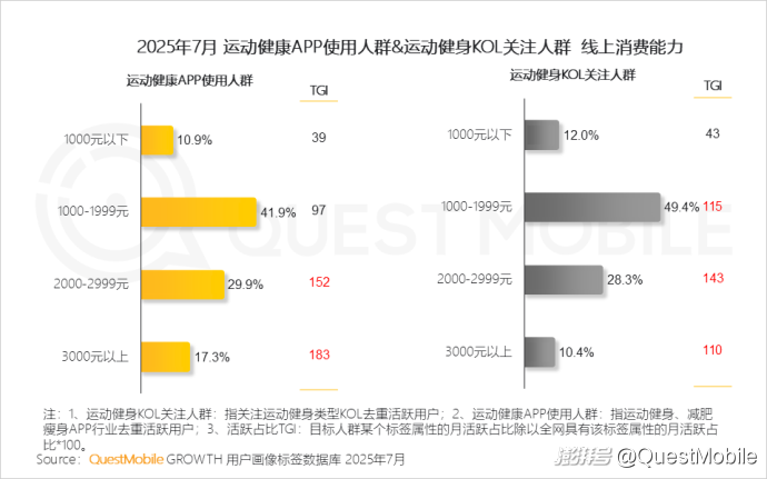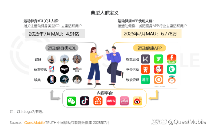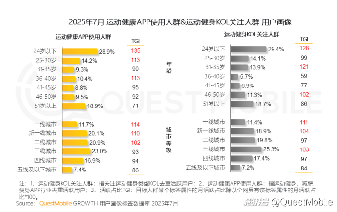 QuestMobile數據顯示,2025年7月運動健身KOL關注人群活躍用戶規模達4.91億,運動健康APP使用人群活躍用戶規模達6778萬。