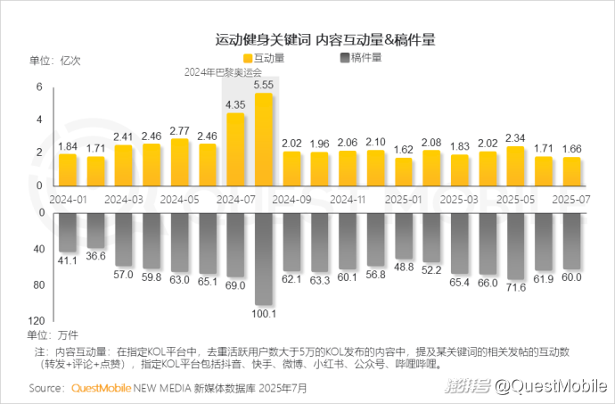 3、運動健身熱潮升級為全民社交新潮流,2025年7月全網運動健身相關內容互動量達1.66億次
