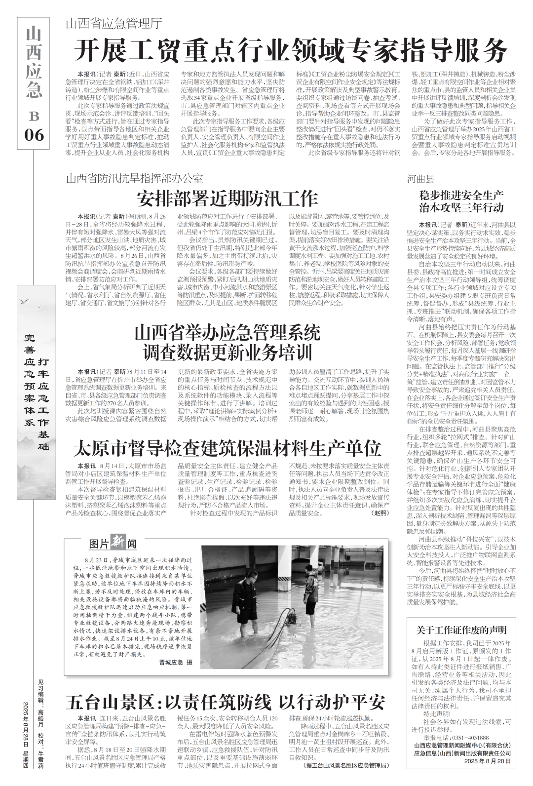 《應急管理》周刊:2025年08月28日山西應急內容