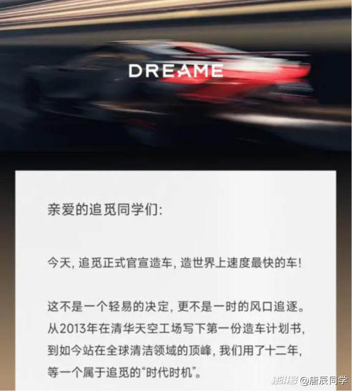 圖源:追覓官宣造車公開信截圖