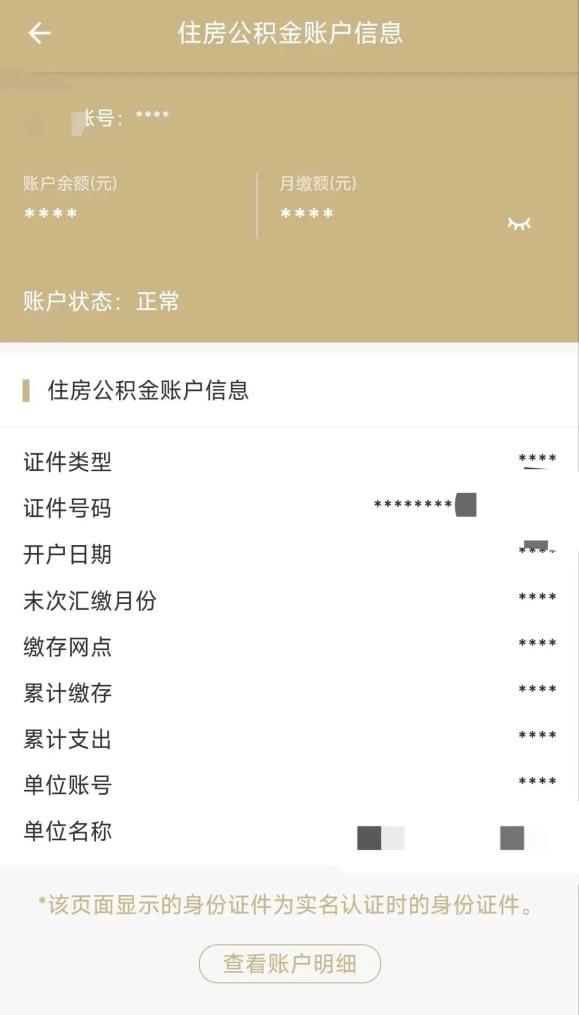 點擊查看詳情后,可查看住房公積金賬戶信息、賬戶余額、月繳費額等信息。