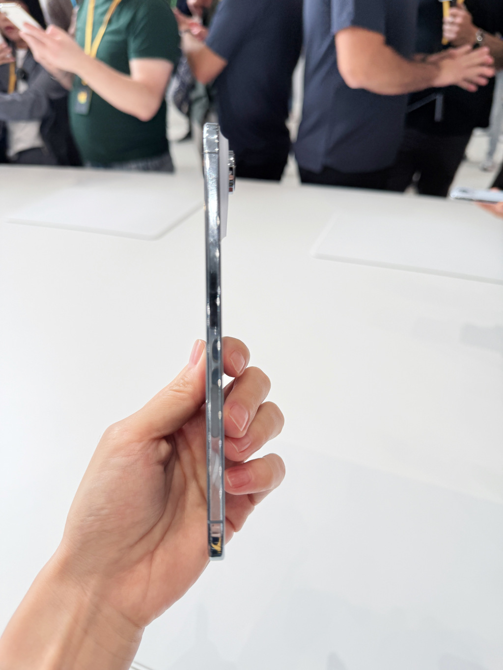 多位在場(chǎng)體驗(yàn)者表示,這是他們用過“最輕薄”的iPhone,甚至有人表示,購機(jī)時(shí)將“在Pro和Air之間猶豫不決”。蘋果稱,這一突破得益于更輕的合金材質(zhì)和重新設(shè)計(jì)的機(jī)身結(jié)構(gòu)。