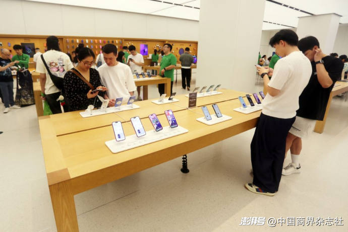 圖為上海一家蘋果智能產品專賣店內,消費者正在體驗iPhone手機。(資料圖,圖片由CNSPHOTO提供)
