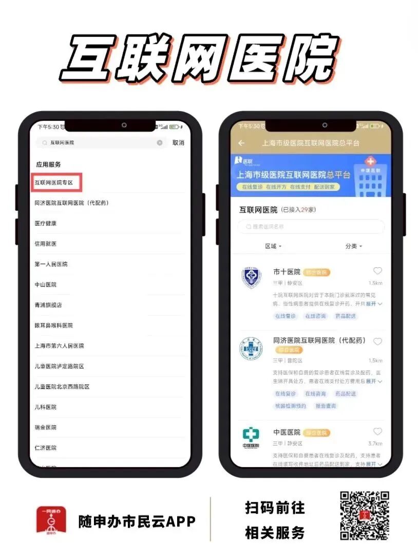 第二步:搜索想去的醫(yī)院,也可按條件進行篩選,隨后點擊進入醫(yī)院服務(wù)頁面,選擇對應(yīng)的復診服務(wù)(以上海中醫(yī)醫(yī)院線上復診為例)。