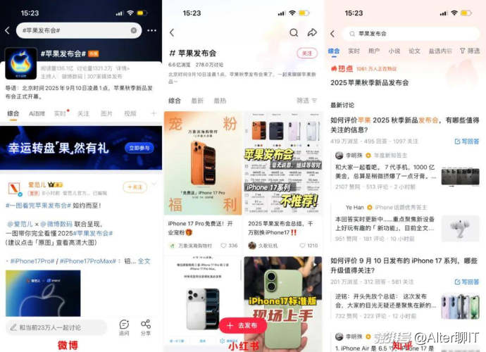 由于發布會本身的內容就是單向傳播的,普通用戶參與內容創作的門檻偏高,能否形成多維度討論與二次傳播,可以說是激勵用戶參與的關鍵要素,取決于平臺是否提供了足夠的衍生切入點,是否具備及時的反饋機制,同時也是衡量不同社交平臺運營能力和話題生命力的抓手。
