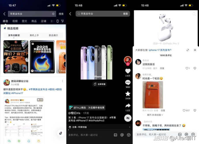 在信息大爆炸的當下,準確性是內容體系的基石,也是微博、抖音、B站等聯合媒體、大V實時解讀,通過專題頁、官方推薦等方式提高權威內容曝光量的原因,這些基礎內容構成了信息傳播的“骨架”,用戶可以第一時間了解蘋果發布會的詳情,包括哪些產品、什么價格。