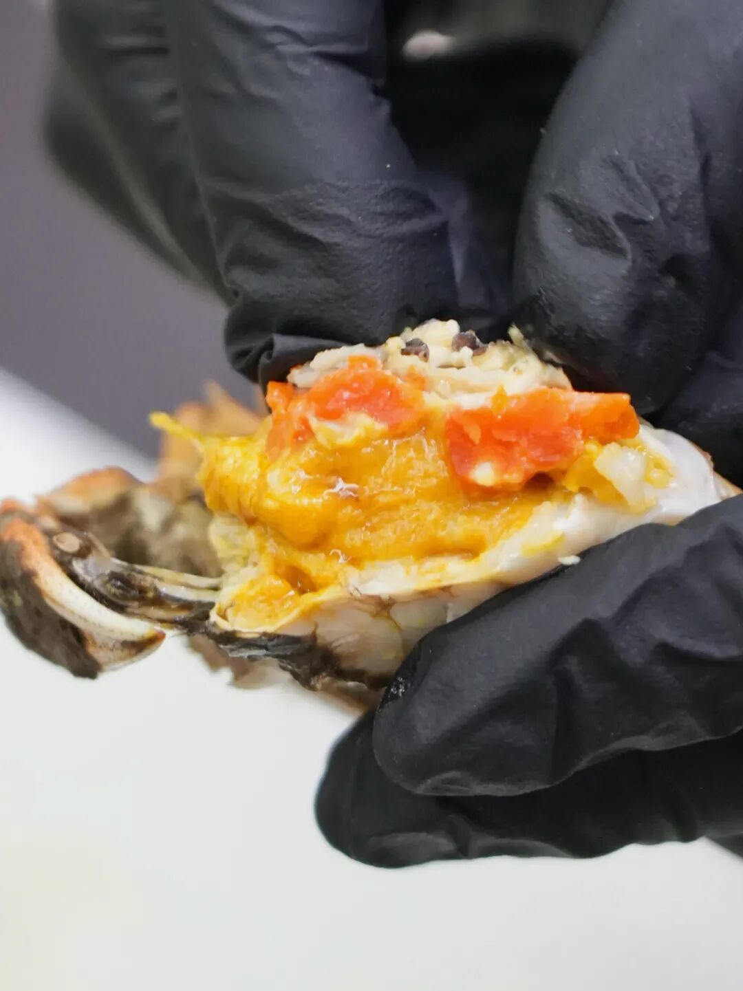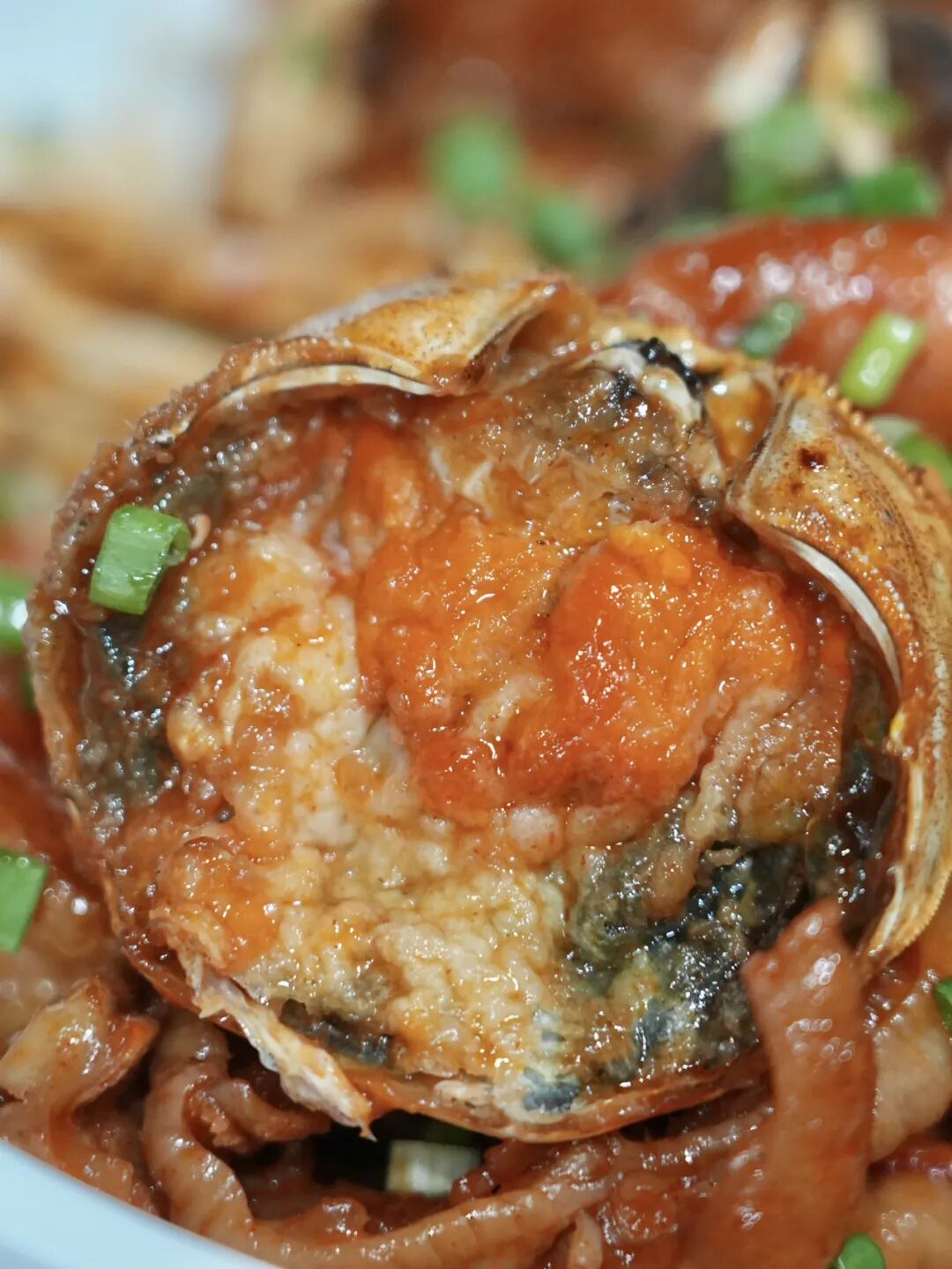 迫不及待嘗一口,肉脂香與螃蟹的鮮醇相輔相成。肉香伴著陣陣清甜,隨之而來的便是螃蟹那獨有的鮮潤味道。