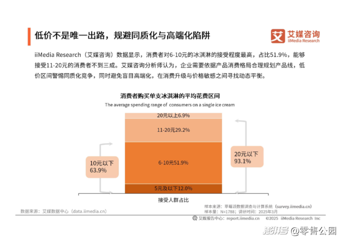 要知道,目前消費者對高價冷凍飲品的接受度十分有限。艾媒咨詢披露的數據顯示,2025年3月,93.1%的消費者只能接受價格低于20元的冰淇淋,僅6.9%的消費者可接受價格高于20元的冰淇淋。由此來看,野人先生的產品價格并不親民。