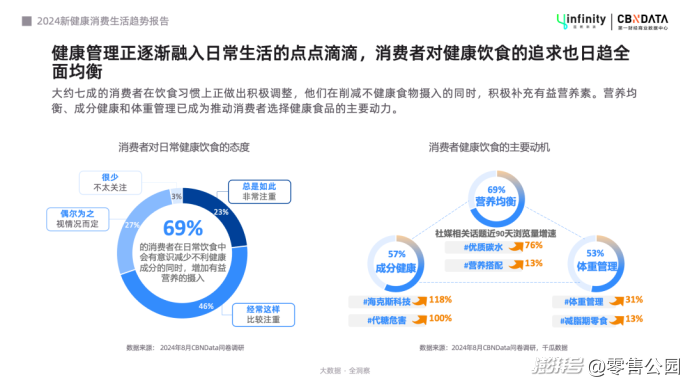 CBNData發布的《健康產業消費趨勢發展報告》顯示,2024年,69%的受訪者在日常飲食中有意識減少不利健康成分的同時,增加有益營養的攝入。低門檻、輕負擔、愉悅性等積極體驗,已成健康消費的重要價值之一。