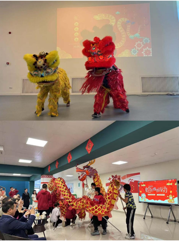 蘭州大學(xué)共建格魯吉亞阿爾特大學(xué)孔子學(xué)院春節(jié)聯(lián)誼會現(xiàn)場的舞龍舞獅表演
