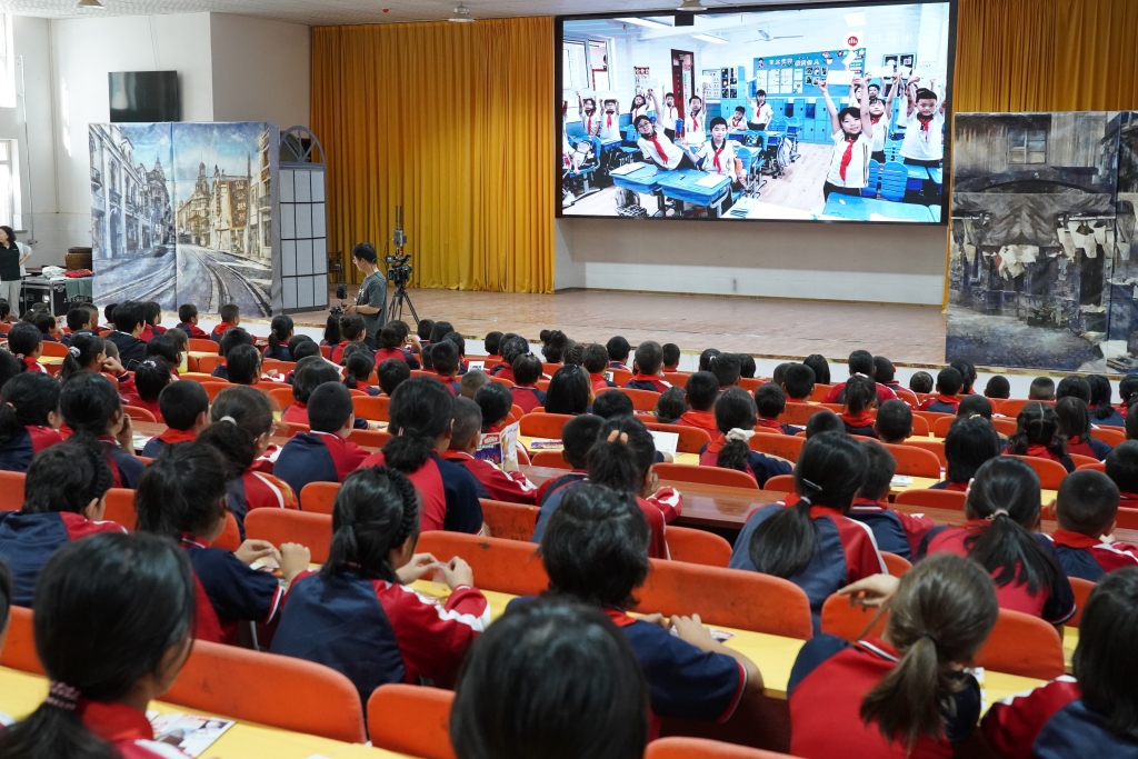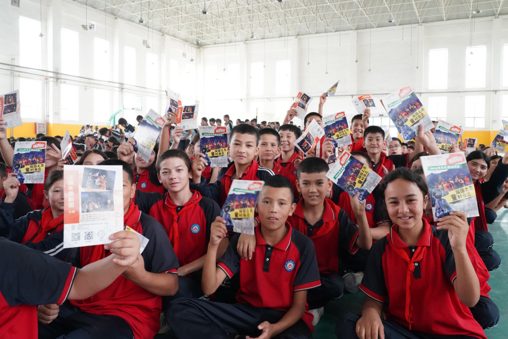 在莎車縣阿熱勒向陽小學,劇團策劃組織了“報國之志 童時當立”開學第一課,通過直播連線,使莎車學生與上海報童小學的同學“面對面”,為跨越千里的友誼搭起了橋梁。