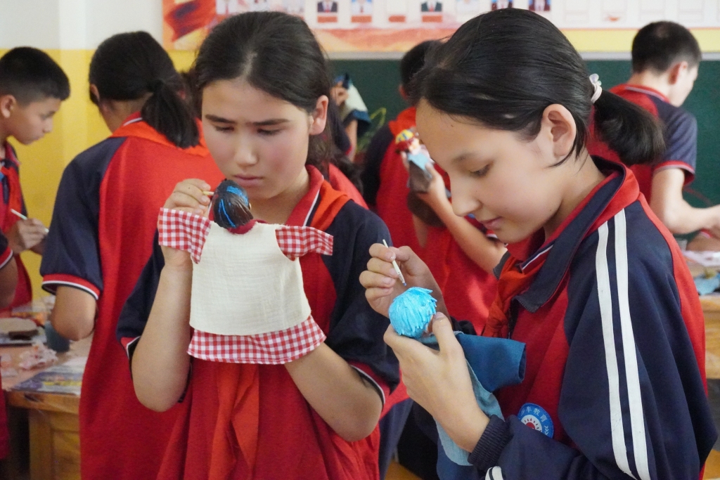 劇團此行,覆蓋了多樣的場域:除各地大中小學外,偶戲的舞臺還延伸至鄉村廣場、農場、牧場等偏遠基層,并走進喀什古城江南書局等文旅地標。通過木偶音樂劇《報童之聲》演出、“非遺工坊”手工課及特色物料設計,為新疆青少年兒童帶來了全面新奇的木偶藝術體驗。