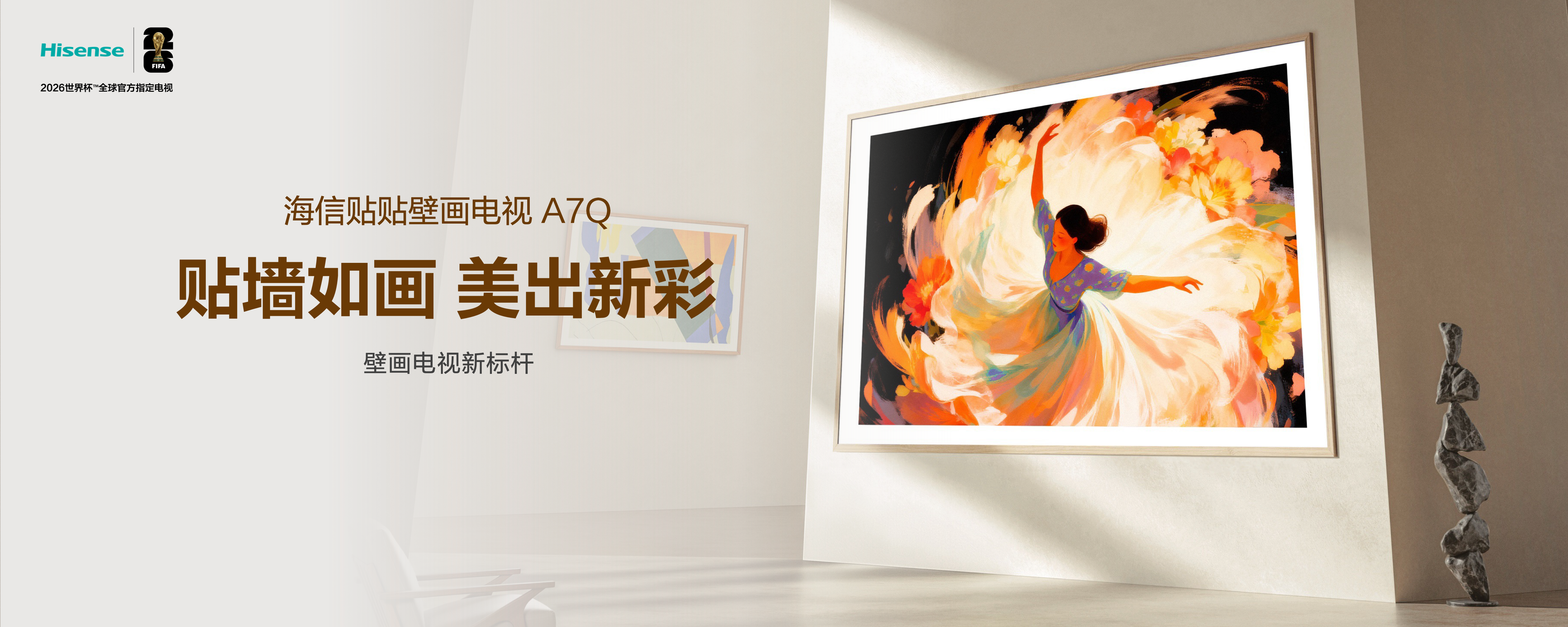 除了發布RGB-Mini LED新品U7S Pro,海信還在現場展示了主張“生活美學”的貼貼壁畫電視A7Q,2.99cm超薄機身如壁畫般融入家居,磁吸畫框隨心更換,內置海量藝術內容,打造“會呼吸的墻”。