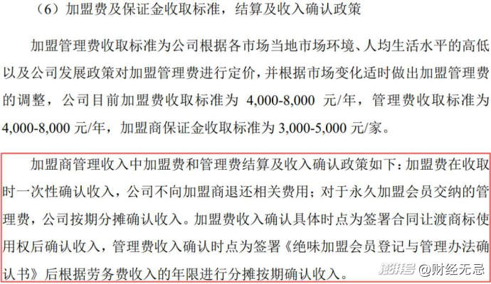 從絕味的招股書來看,公司明確列示的收入類別中只有“加盟費(fèi)管理收入”,并未提及裝修款。這說明在IPO時(shí),公司和中介機(jī)構(gòu)都認(rèn)為裝修業(yè)務(wù)不屬于主營收入范疇。