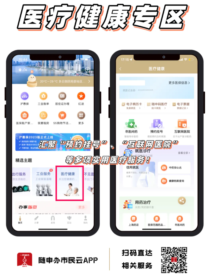 第一步:打開“隨申辦市民云”APP,搜索進(jìn)入【互聯(lián)網(wǎng)醫(yī)院】服務(wù)。或掃描下發(fā)二維碼即可進(jìn)入服務(wù)。