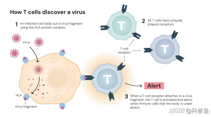這群數量龐大、形狀各異的T細胞可以確保在被不同微生物入侵時,總有一些T細胞受體能夠進行準確識別。