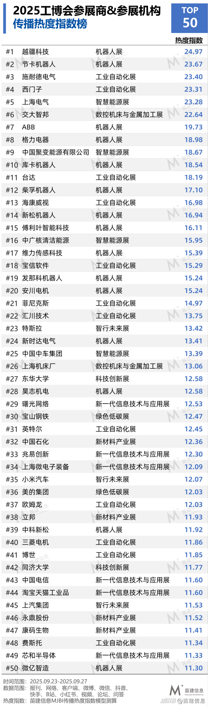 03. TOP50展商榜:越疆科技第一,機器人展、工業自動化展參展企業超半數席位