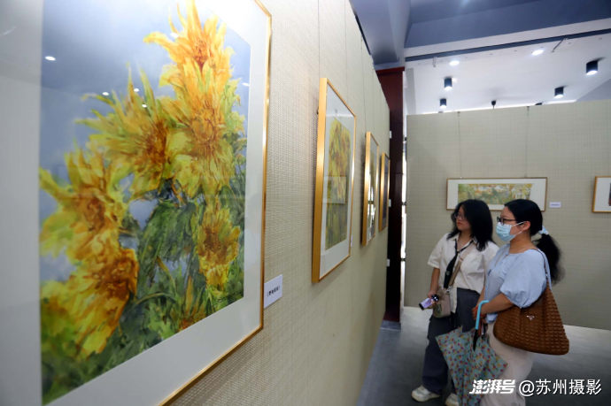 展覽作品涵蓋蘇州園林、蘇州小巷、太湖風景和向日葵四方面內容,每一幅作品都散發著濃郁的江南文化氣息。漫步在展廳,仿佛置身于江南水鄉的詩意畫卷之中,讓人感受到江南婁水兩岸的四季更迭、晨昏交替與人文肌理。