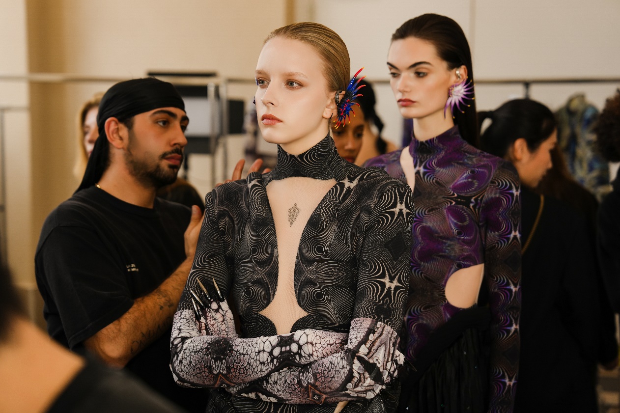 HENGDI WANG誕生于倫敦與上海之間,將東方神話與古典意象融入實驗性工藝,結合3D打印織物與重構刺繡,塑造兼具無性別與未來感的獨特表達。