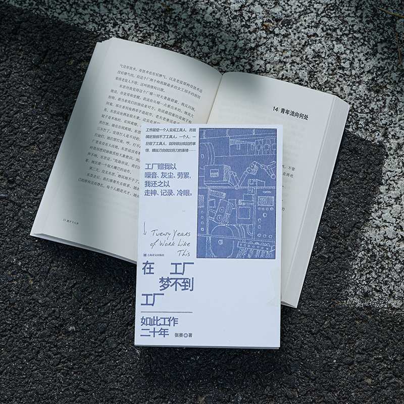 《在工廠夢不到工廠》寫的,就是這樣的生活。十二小時的班次,機器的轟鳴,粉塵與燈光并行。張賽在其中寫作,在噪音中思考,在重復中對抗。在無數相同的日子里,他嘗試為自己留下一小塊安靜的地方。
