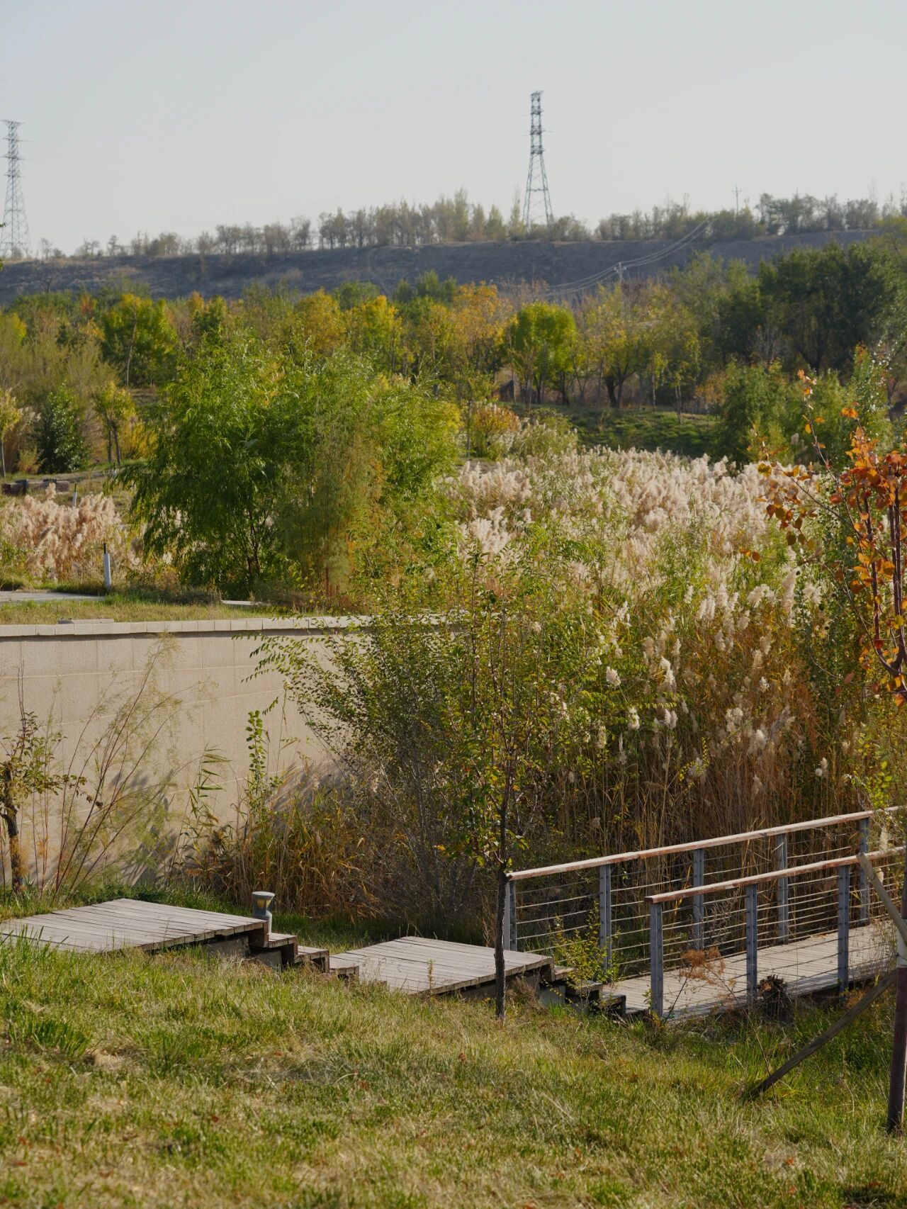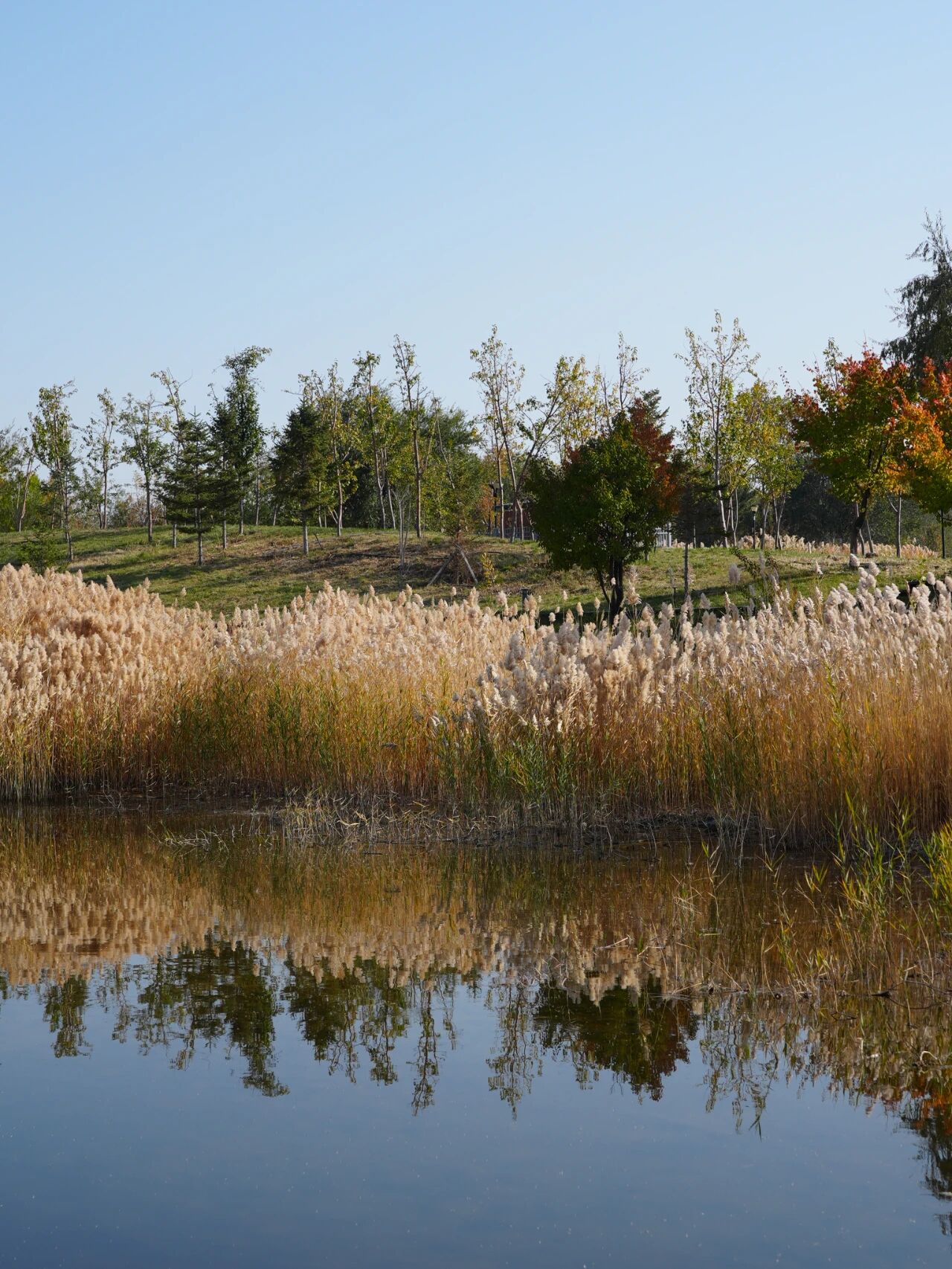 園內有 6 個大小不一的人工湖,每一個都被層疊的蘆葦包圍。公園里人很少,沿著木棧道慢慢走,只聽見蘆葦被風吹起的“沙沙”聲。