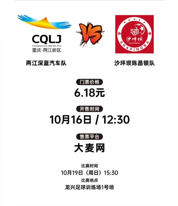 本周日,沙坪壩客場(chǎng)對(duì)戰(zhàn)兩江!明天上午10:00準(zhǔn)時(shí)開(kāi)票