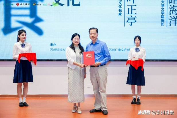 活動(dòng)期間,蘇州科技大學(xué)圖書館館長(zhǎng)范凌云與文學(xué)院院長(zhǎng)路海洋分別向葉正亭頒發(fā)了“石湖講壇”文化顧問與蘇州科技大學(xué)文學(xué)院兼職教授聘書,為進(jìn)一步推動(dòng)江南文化研究與校園美育深度融合注入新動(dòng)力。(文字:陳小燕 圖片來自:蘇州廣電總臺(tái)蘇州音樂廣播)