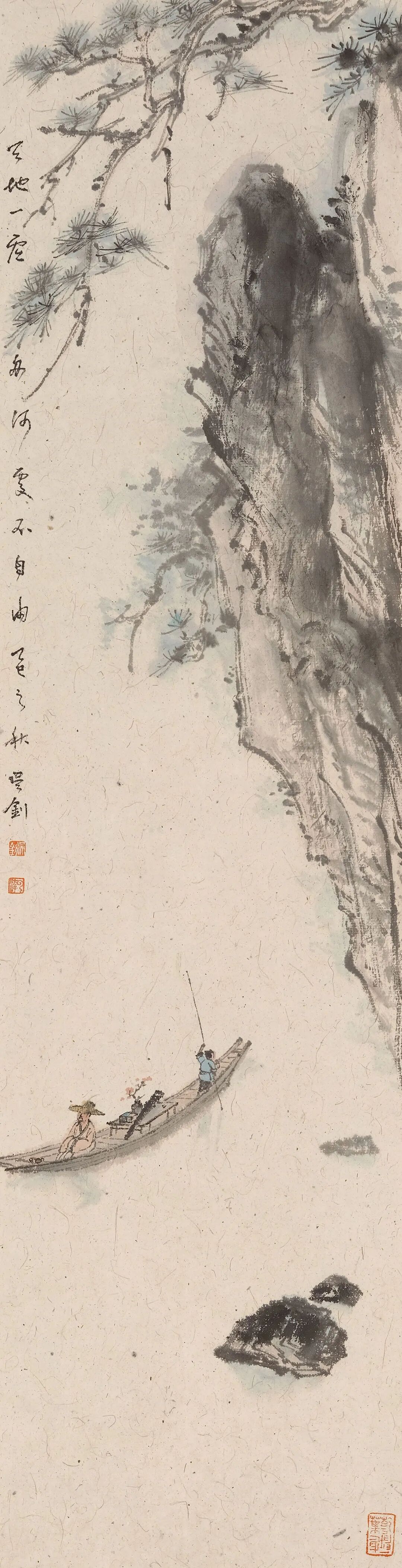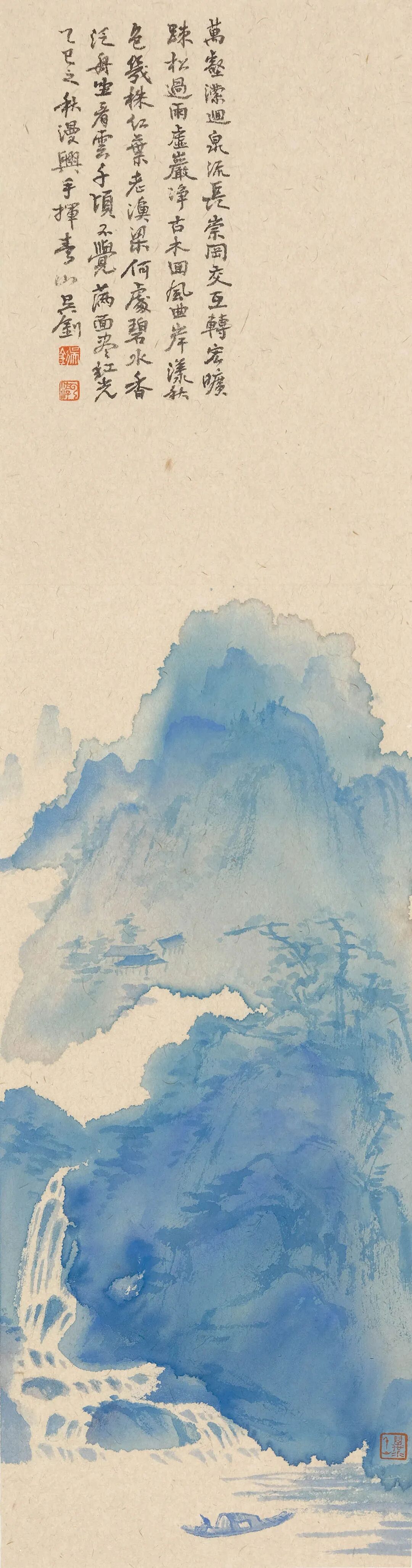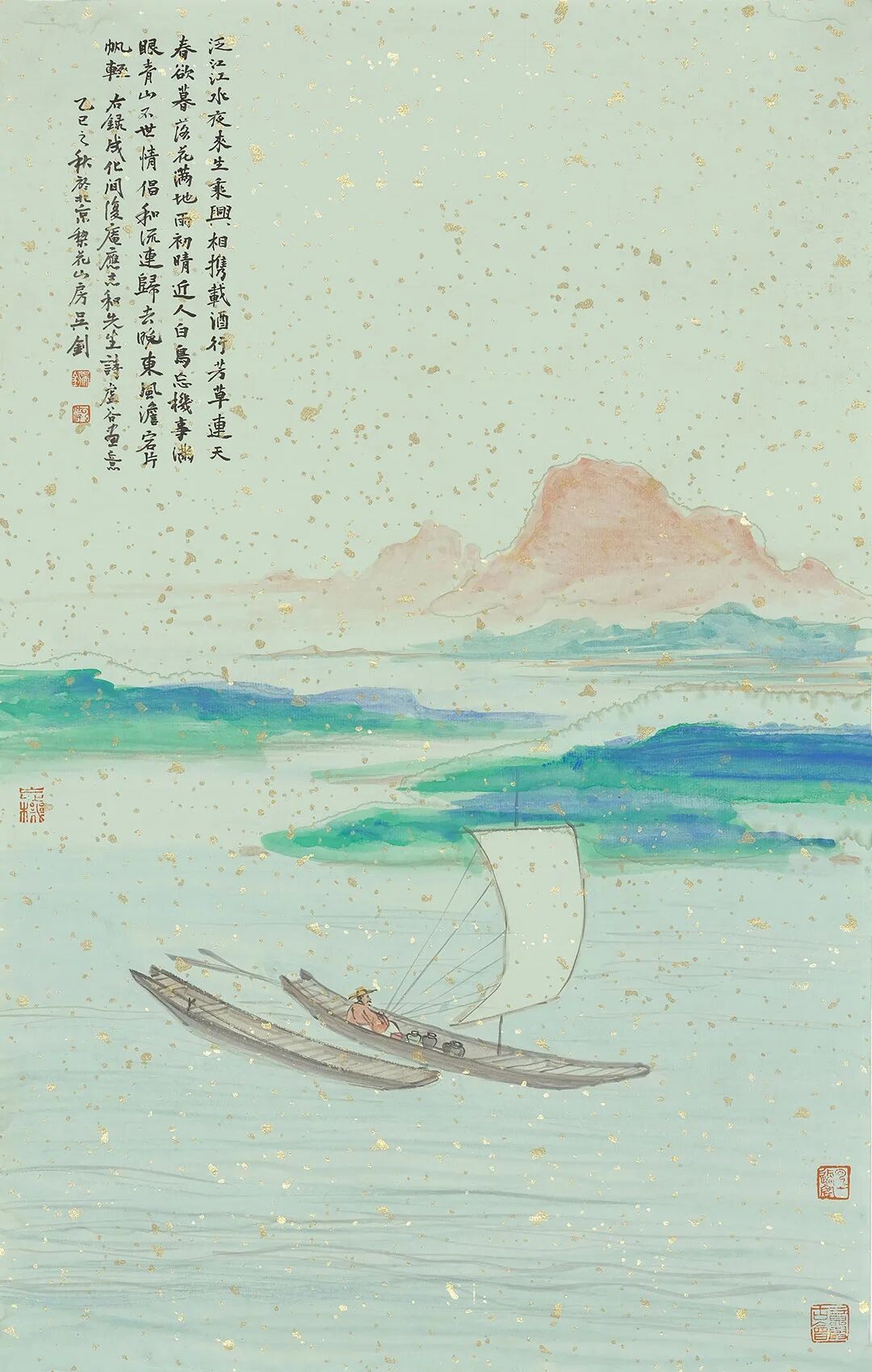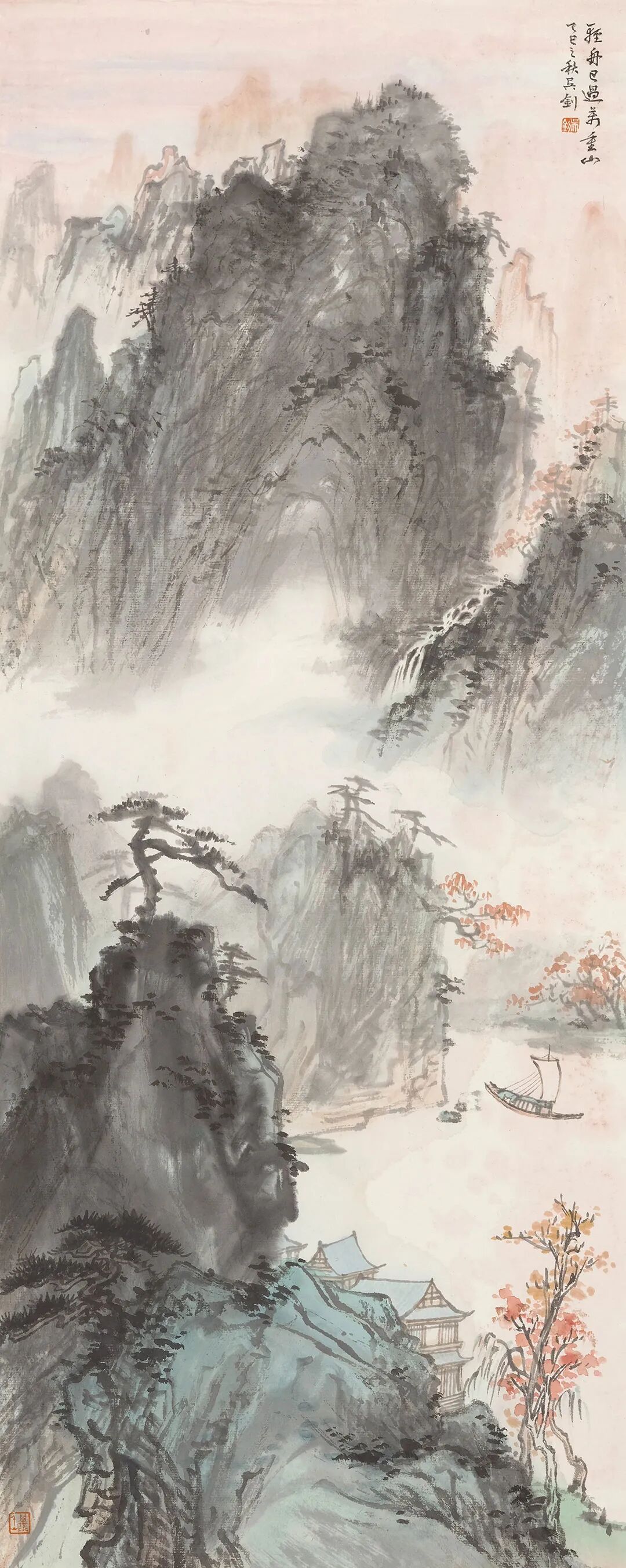 青山綠水一帆輕-紙本設色-67x34cm-2025