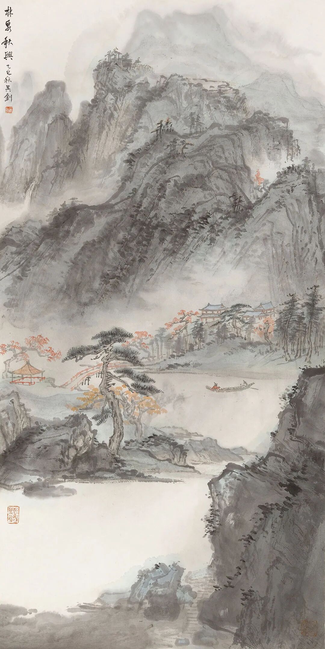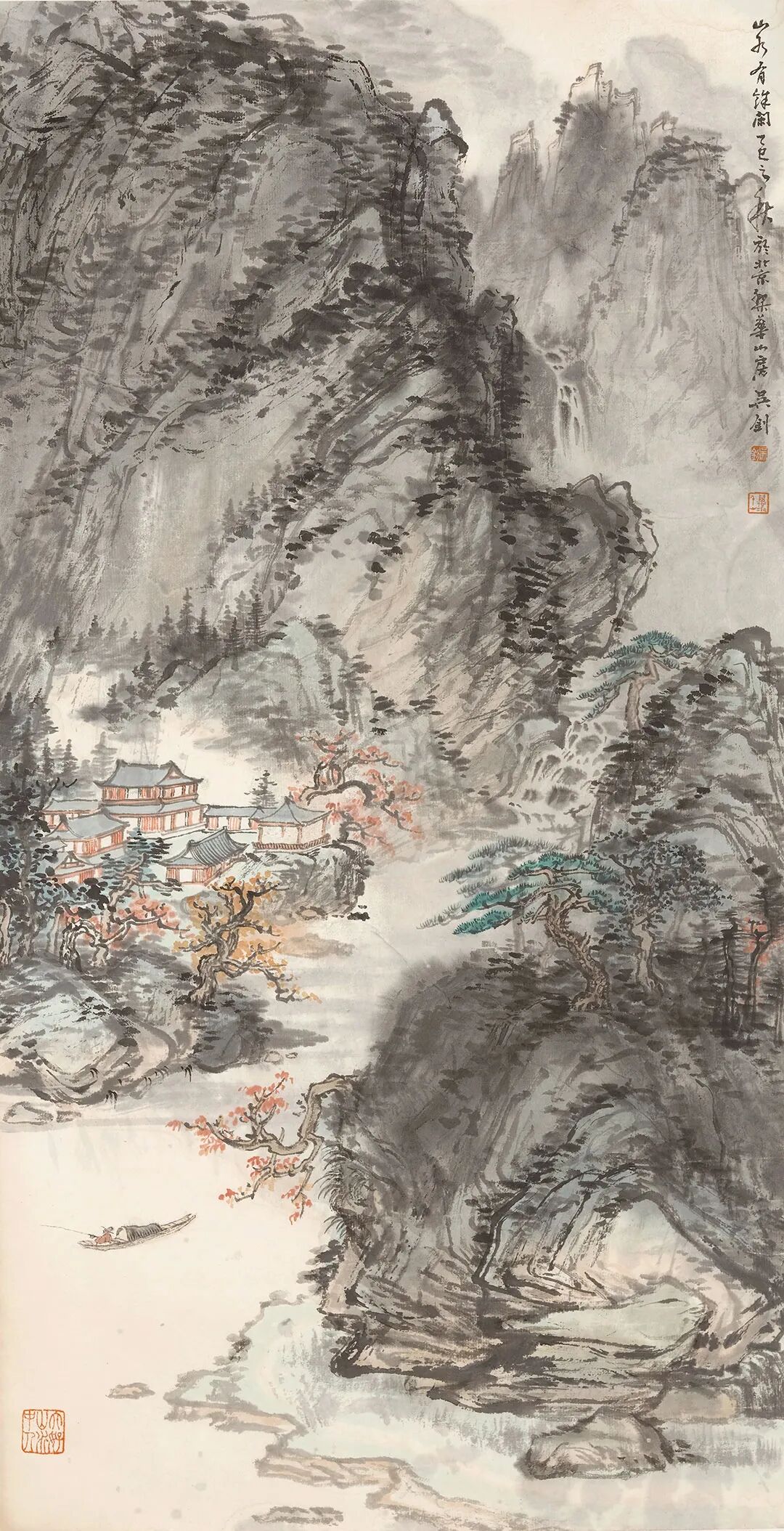 山水澄明相逢時-紙本設色-50x26cm-2025